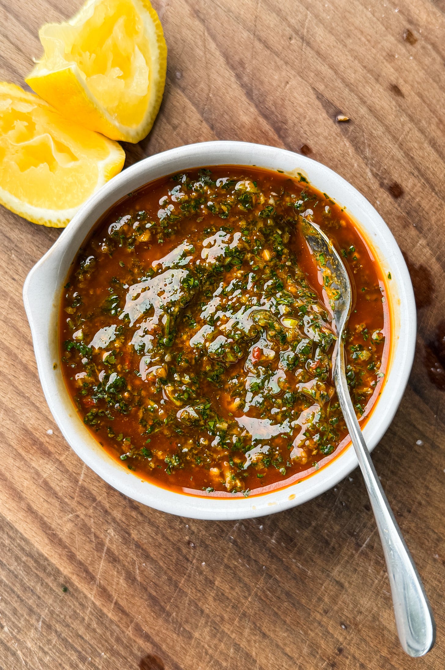 Don’t over-blend the chermoula. Pulse just enough to chop the herbs while keeping some texture.